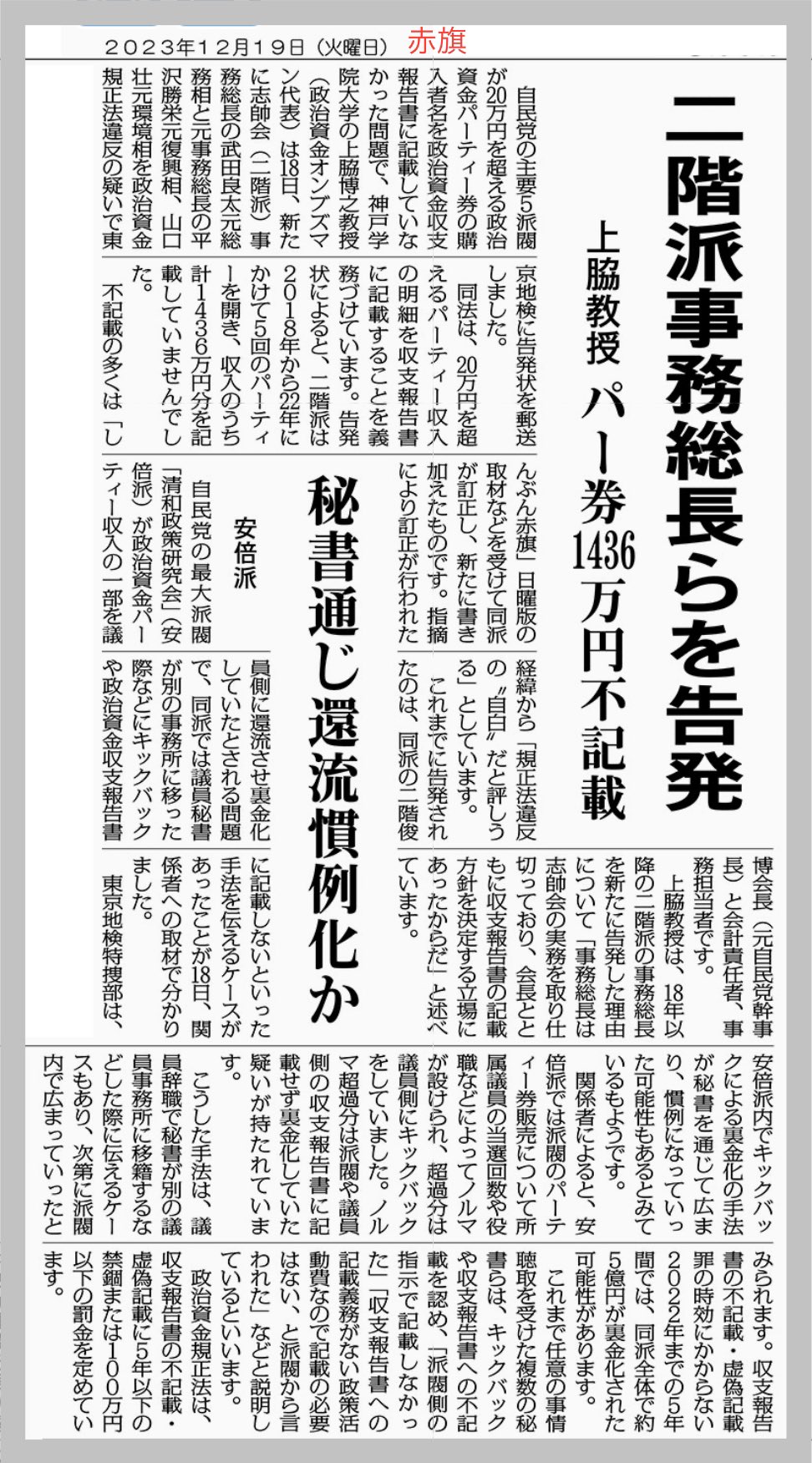 岸田総理大臣が派閥の政治資金事件で処分を受けず、自らの責任について「国民、党員に判断してもらう」と発言したことに対し、共産党の田村委員長は「非常に許しがたい」と厳しく批判しました。